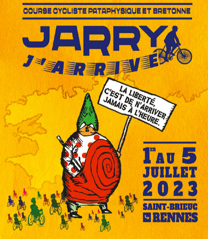 Le 1er juillet, jour exact du lancement du Tour de France qui snobe ignominieusement la Bretagne, 10 cyclistes artistes mixtes majoritairement non sportifs s'élancent depuis l'esplanade Alfred Jarry de Saint brieuc, en face de l'immeuble où l'auteur scandaleux du "Père UBU" vécu une enfance à priori satisfaisante...