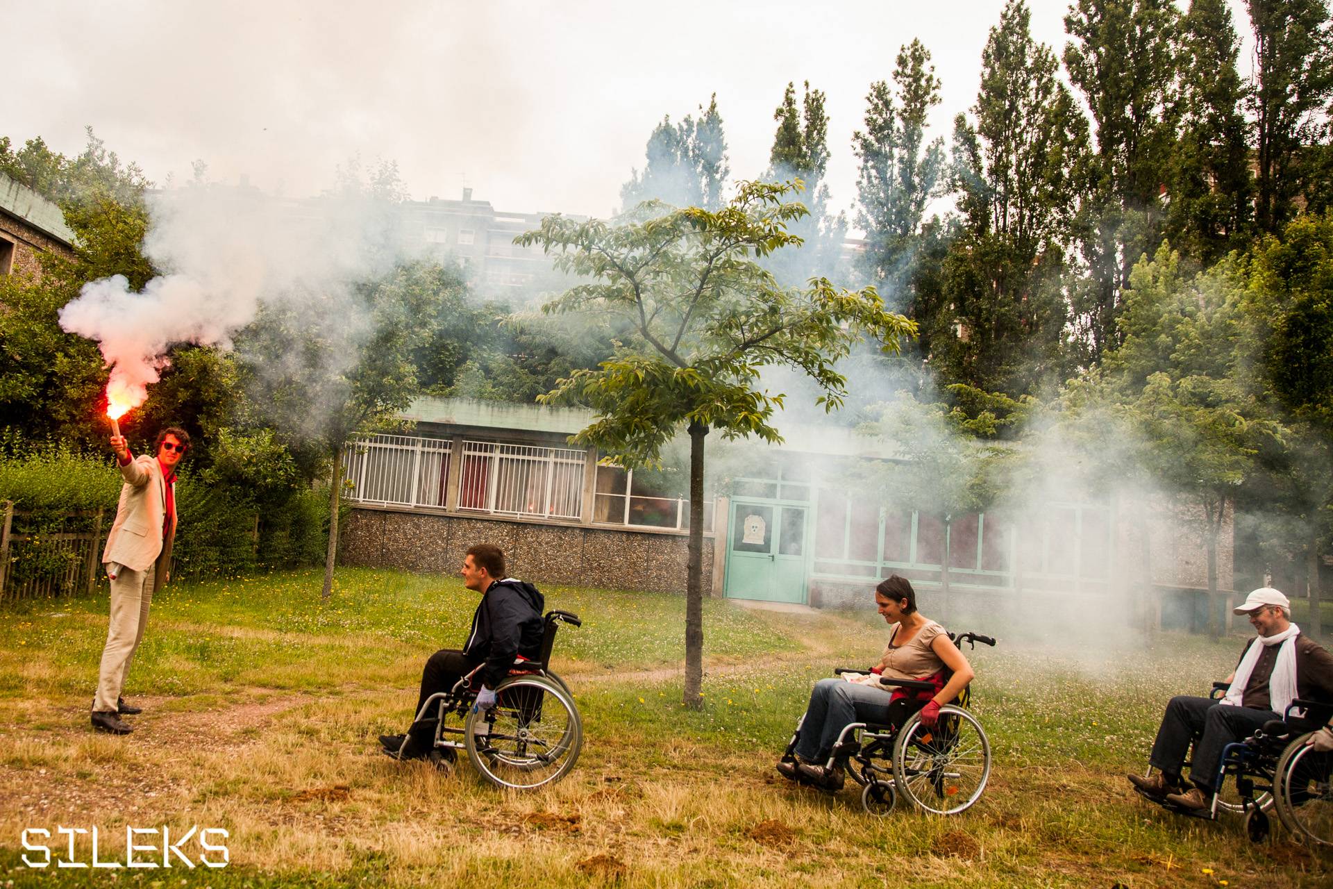 Le fauteuil roulant est l’instrument et l’outil de MISSION ROOSEVELT, le symbole de tout ce qui ne nous concerne pas, mais qui aujourd’hui nous appartient. Il s’agit d’une métaphore de l’inégalité à travers laquelle conquérir la ville.